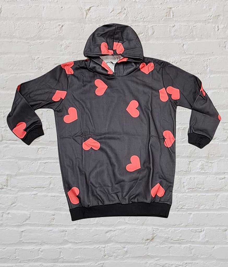 Descriere Hanorac gros vatuit inimioare Negru, material bumbac vatuit. Este perfecta in sezonul rece in tinute sport, casual.